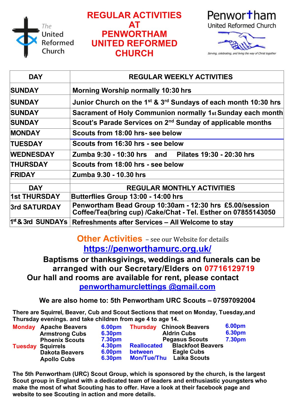If raining the service will be held at Penwortham United Reformed Church. Liverpool Road at 11.00am .